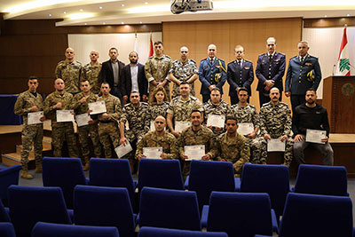 نظمت المديرية العامة للأمن العام حفل تخريج وتوزيع شهادات على المشاركين في المرحلة الأولى من الدورة التدريبية المشتركة مع كافة الأجهزة الأمنية والعسكرية والتي تُعنى بالتوقيفات والقتال المتقارب والدفاع عن النفس وتوقيف مطلوبين بحضور ممثل عن مدير عام الأمن العام العميد عامر الميس وممثلين عن كافة الأجهزة الأمنية وعدد من الضباط والمدربين الذين رافقوا المتخرجين في مدرسة القتال.